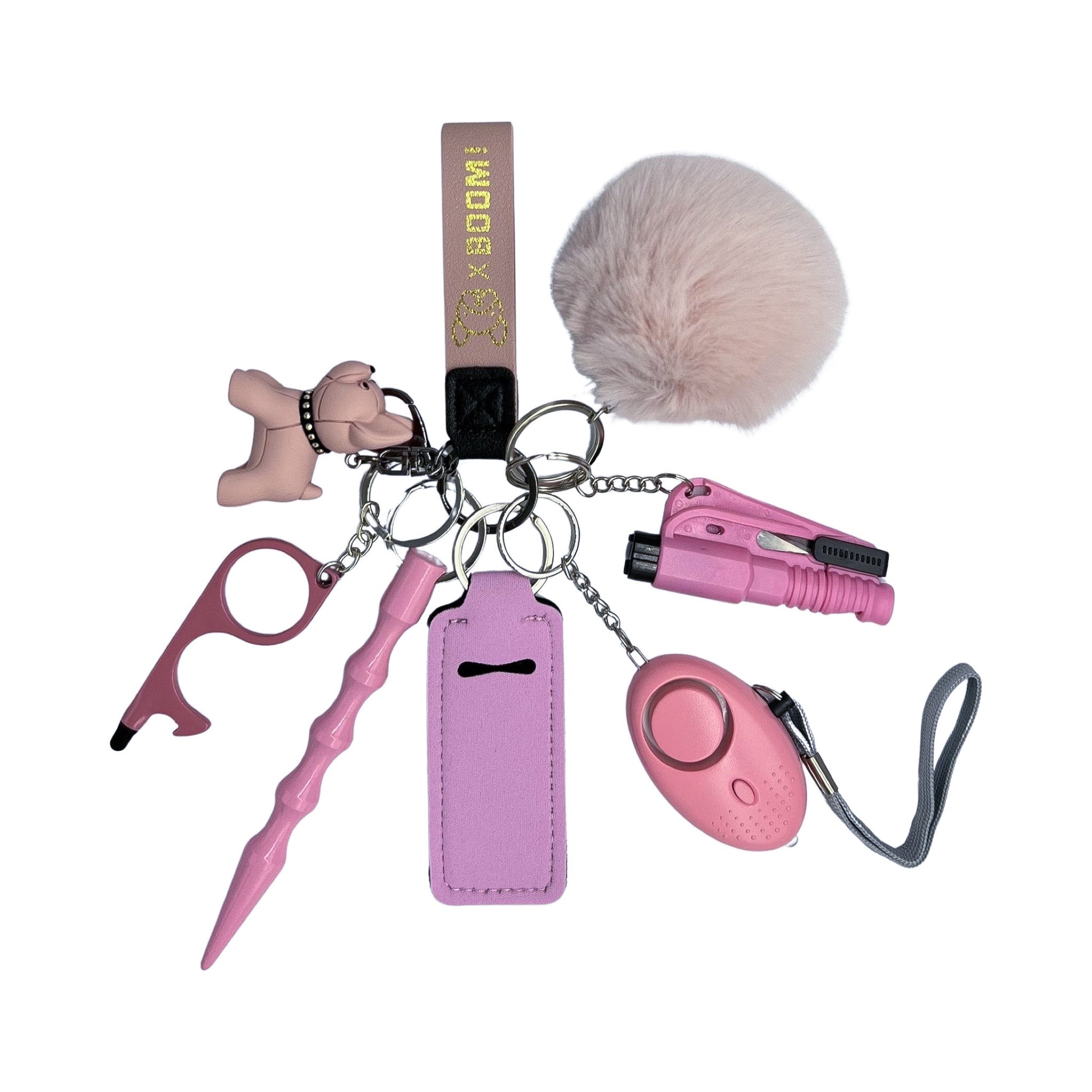 Playful, yet classy. The 7 piece Frenchie in Powder Pink Safety Keychain provides all of the essential items to create one perfect keychain. Conveniently swap out or remove any piece depending on how you want your keychain to look. Lightweight and easy to store in your purse, car, or side table.